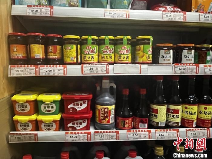 商店里擺放的老干媽和其他調(diào)味品。 中新網(wǎng) 左宇坤 攝