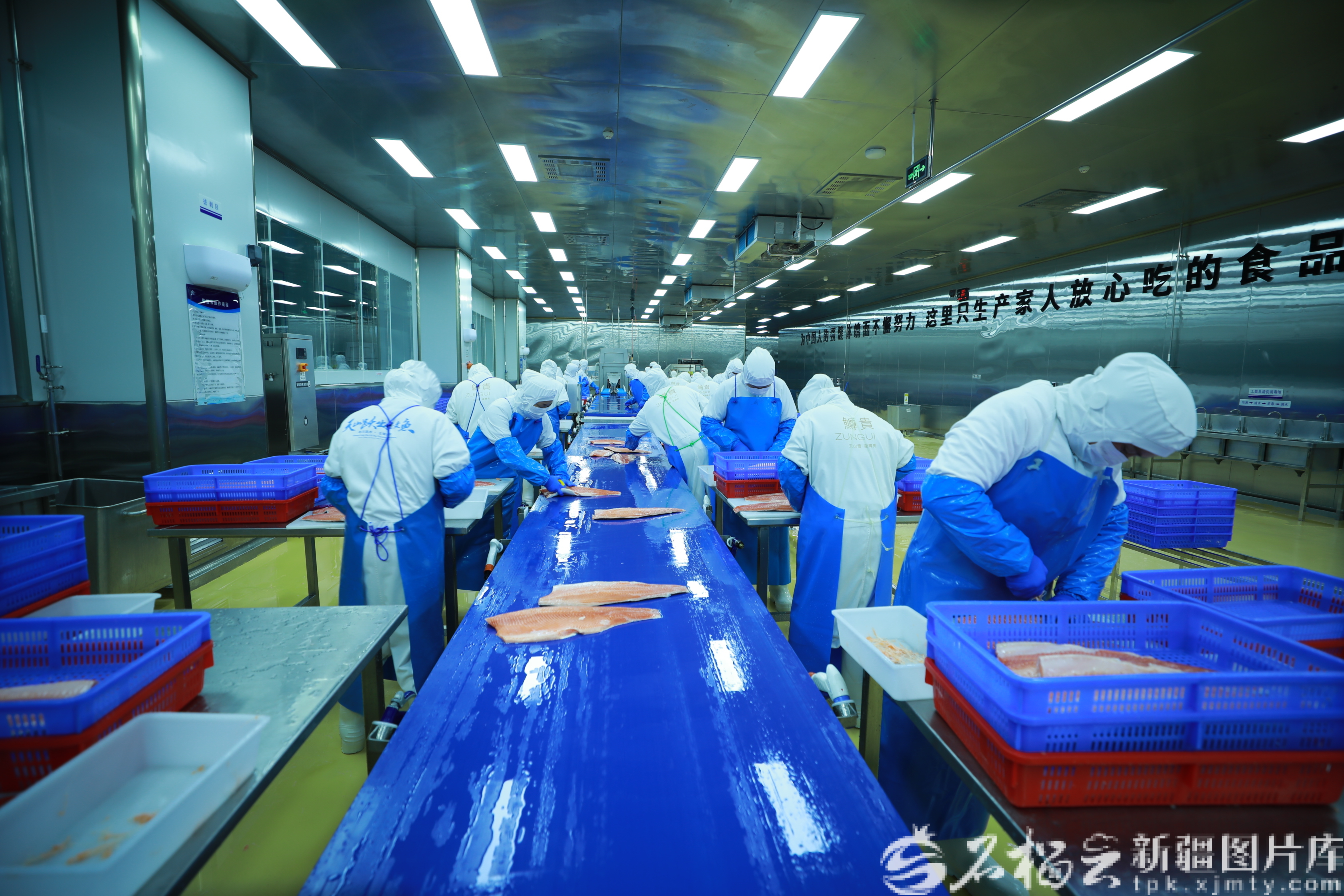 新疆天蘊(yùn)有機(jī)農(nóng)業(yè)有限公司三文魚(yú)深加工廠,工人在加工三文魚(yú)。趙學(xué)林?jǐn)z(資料圖)