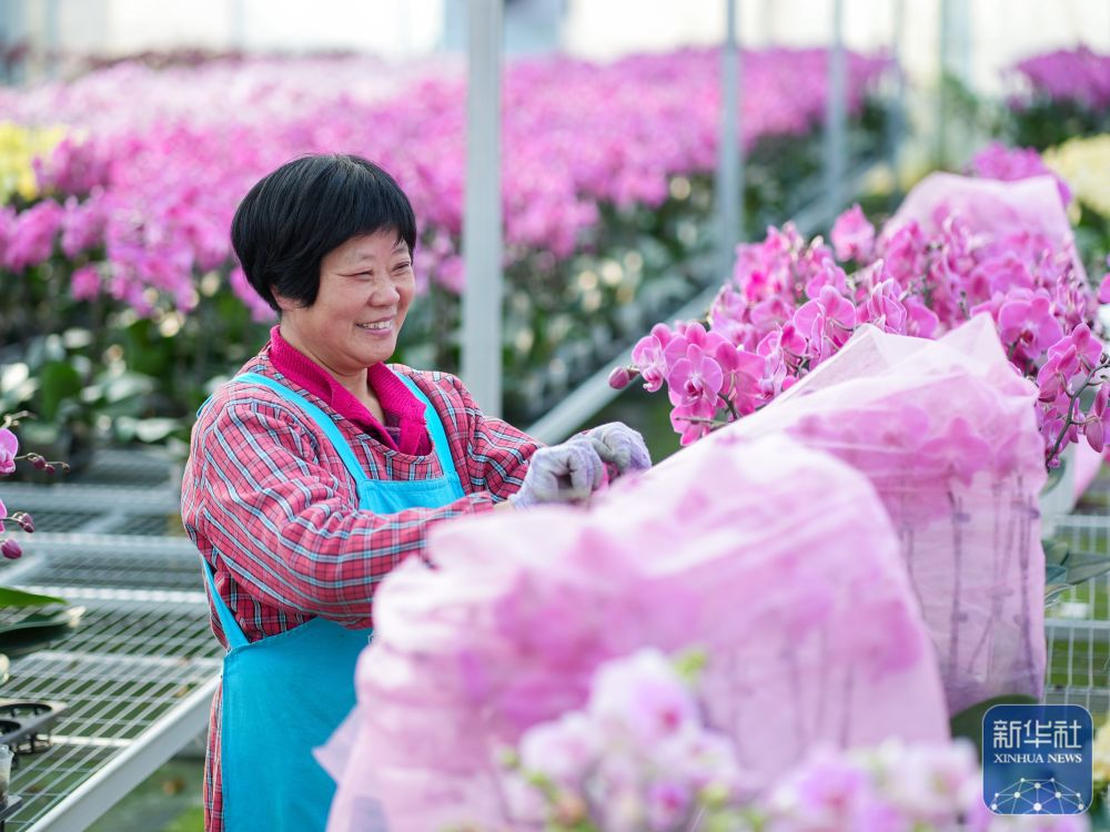 ↑1月23日,花卉工人在江蘇省泰州市姜堰區(qū)顧高鎮(zhèn)現(xiàn)代園藝產(chǎn)業(yè)園基地為花做造型,準(zhǔn)備供應(yīng)節(jié)日市場(chǎng)。新華社發(fā)(周社根攝)