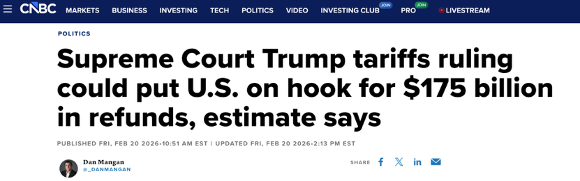 更值得注意的是,從近兩天動作看,白宮的核心優(yōu)先級并不是“盡快把錢退回去”,而是“盡快把關稅工具續(xù)上”。白宮一方面通過行政令,終止依據IEEPA加征的額外從價稅,另一方面又迅速依《1974年貿易法》第一百二十二條祭出為期150天的臨時全球15%關稅,同時加大利用301條甚至232條等傳統(tǒng)工具,繼續(xù)搭建新的關稅墻。這套動作釋放的信號十分明確:關稅杠桿要繼續(xù)用,至于已經收來的稅款怎么退、退多少,姑且交給訴訟和程序去磨。換句話說,即便法院逼著政府退錢,白宮也在試圖通過新一輪、基于其他法律授權的關稅,把現(xiàn)金流盡可能補回來。