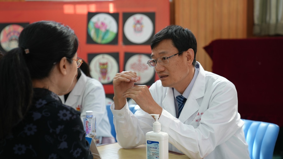 義診現(xiàn)場(chǎng),前來咨詢就診的女教職工朋友有序候診,其中不少老師拿著體檢報(bào)告和既往病歷來到專家臺(tái)前進(jìn)行詳細(xì)咨詢。此次義診,內(nèi)蒙古醫(yī)科大學(xué)附屬醫(yī)院醫(yī)療烏蘭牧騎派出了神經(jīng)內(nèi)科、消化內(nèi)科、心血管內(nèi)科、骨科、甲乳外科、泌尿外科、胸外科、超聲科、中醫(yī)科、婦產(chǎn)生殖醫(yī)學(xué)科、康復(fù)醫(yī)學(xué)科等11個(gè)專業(yè)的19位專家及醫(yī)護(hù)骨干,為廣大園丁提供查體、疾病咨詢和健康科普服務(wù)及測(cè)量血壓、把脈問診、超聲檢查、心電圖檢查、早期胃癌篩查、早期肝癌篩查等檢測(cè)項(xiàng)目。附院專家耐心細(xì)致地詢問病史、解答疑問,并根據(jù)不同的病癥和個(gè)體差異給予個(gè)性化的診療建議。同時(shí)對(duì)職業(yè)女性常見的消化系統(tǒng)疾病、甲狀腺疾病、乳腺疾病、婦科疾病、腰椎間盤突出等疾病開展了專業(yè)、細(xì)致、通俗的健康科普。