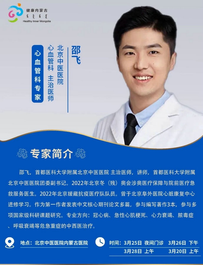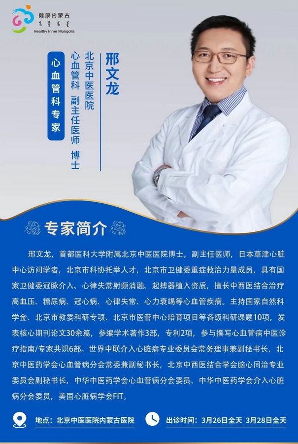 京蒙協(xié)作 政協(xié)助力。每周有北京相關(guān)協(xié)作醫(yī)院專家來呼和浩特出診,現(xiàn)將本周專家出診信息予以發(fā)布。