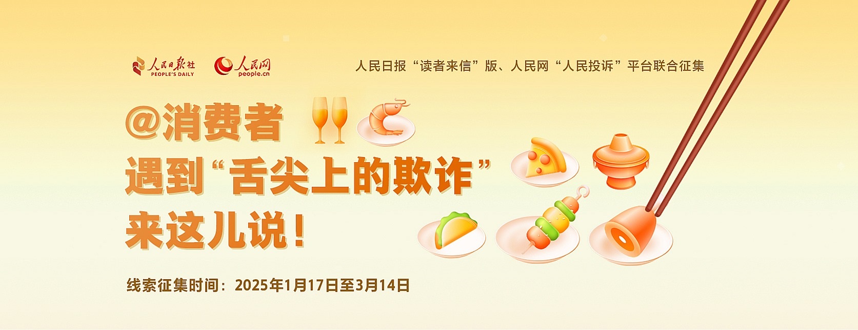 牛肉干里不含牛肉,無糖產(chǎn)品其實含糖,配料表造假、營養(yǎng)成分表不準(zhǔn)確……你遇到過嗎?“以假亂真”“以次充好”為代表的食品欺詐,嚴(yán)重?fù)p害消費者利益,擾亂市場公平競爭秩序。為筑牢食品安全防線,增強消費者信心,即日起,人民日報“讀者來信”版與人民網(wǎng)“人民投訴”平臺聯(lián)合發(fā)起相關(guān)線索征集,歡迎您掃描上方海報二維碼進(jìn)入征集頁面留言或提供調(diào)查線索至人民日報“讀者來信”版(郵箱:dzlx@peopledaily.cn 傳真:010-65368495)。線索征集時間截至2025年3月14日。