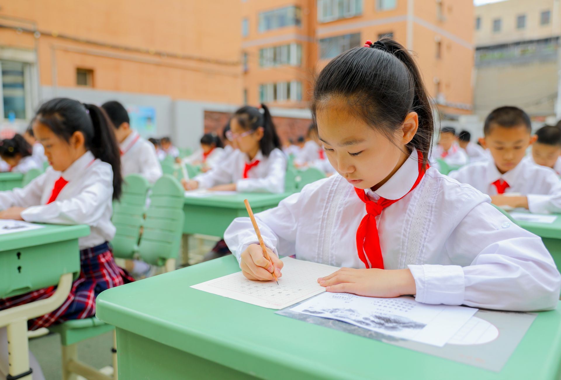 6月13日,呼和浩特市玉泉區(qū)恒昌店巷小學(xué)的學(xué)生們正在參加書法比賽。當(dāng)日,該校“校園書法文化節(jié)”漢字書寫大賽開賽,200多名學(xué)生在硬筆和軟筆項(xiàng)目上展開比拼。活動(dòng)旨在提高孩子們漢字書寫水平,弘揚(yáng)中華民族優(yōu)秀傳統(tǒng)文化。