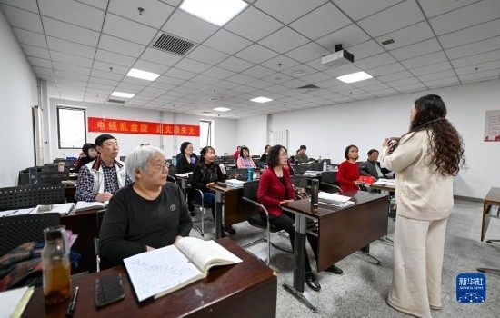4月4日,在天津市河西區(qū)文化館,教師為老人們授課。