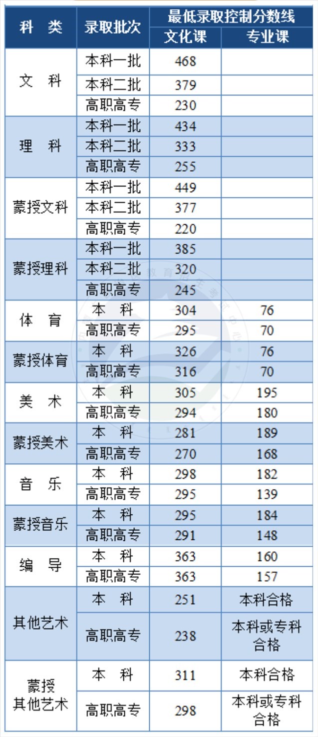 2023年內(nèi)蒙古高考分?jǐn)?shù)線公布:一本文科468分、理科434分