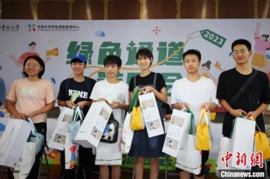 在綠色通道辦理入學(xué)的學(xué)生獲贈(zèng)入校大禮包。泱波 攝