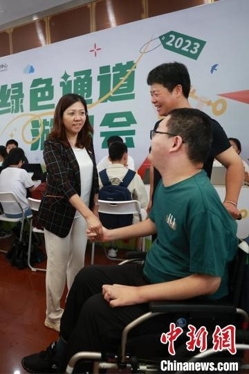 東南大學(xué)校長(zhǎng)黃如歡迎董亦超的到來,目前,東南大學(xué)已為董亦超安排無障礙宿舍。泱波 攝