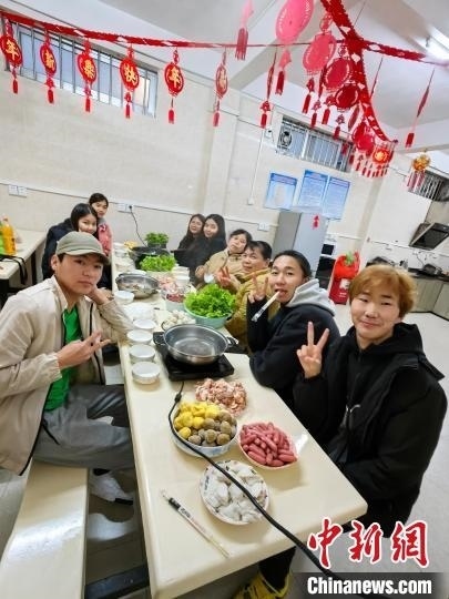 嶺南師范學院來華留學生在吃“年夜飯”。張一弛 攝