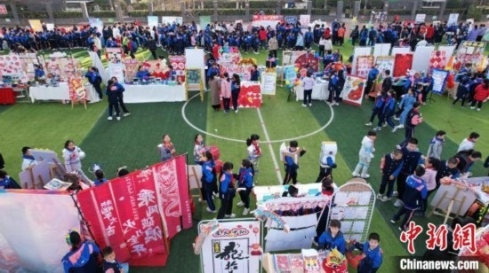 3月11日,航拍熱鬧的校園“廟會”現(xiàn)場。中新網(wǎng)記者 翟羽佳 攝