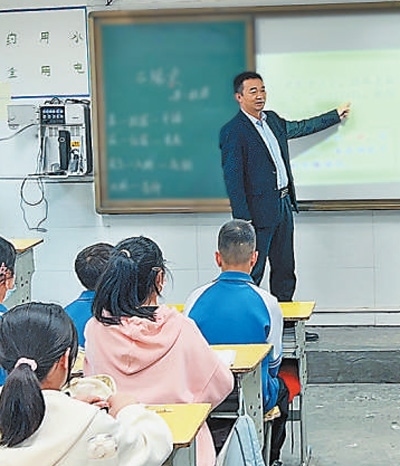 八仙中學(xué)校長李強(qiáng)在給學(xué)生上課。本報(bào)記者 張丹華攝