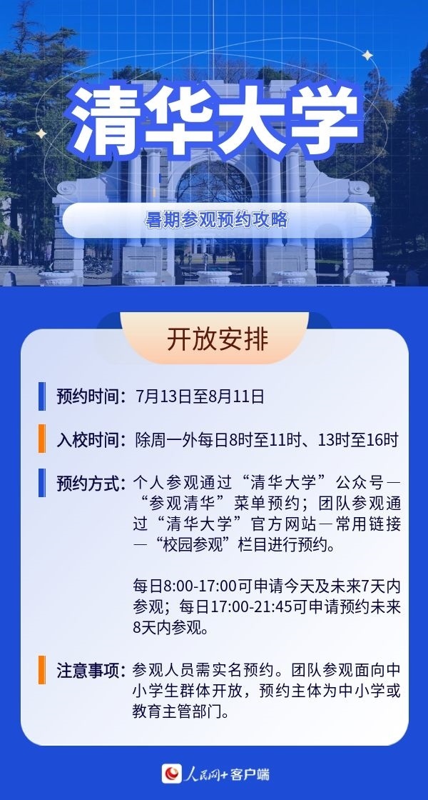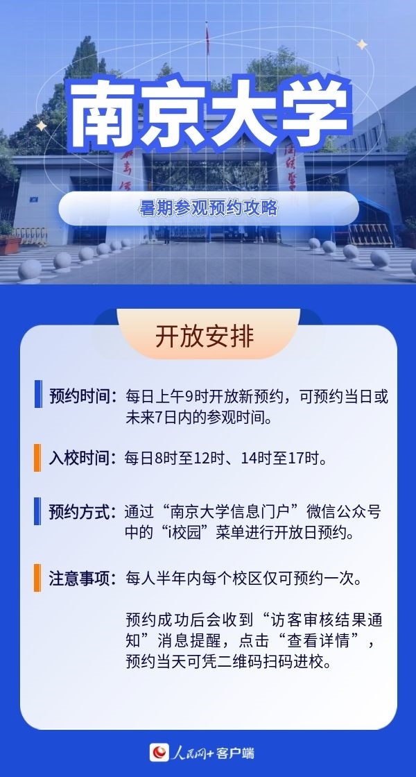 人民網(wǎng)北京7月19日電 暑假來臨,帶孩子參觀高校,感受學(xué)校人文歷史底蘊以及濃厚的學(xué)術(shù)氛圍,已經(jīng)成為很多家長的選擇。近日,全國多所高校開放校園,接受公眾參觀。那么如何預(yù)約進(jìn)校?有什么注意事項?人民網(wǎng)特別整理了部分高校的參觀預(yù)約攻略,一起來看。(郝孟佳、實習(xí)生趙雪祺)