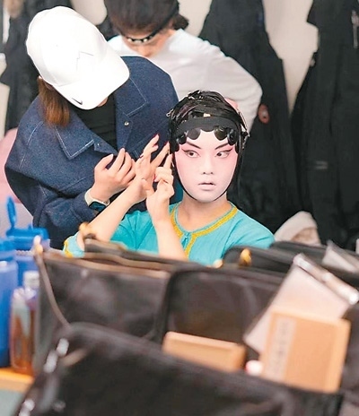史欣玉對于演出扮相有嚴(yán)格的要求,她說:“我想盡可能地將戲曲完美呈現(xiàn)在觀眾眼前,讓大家一看就知道,我們的演出是專業(yè)的,因此妝造、舞臺(tái)效果都不能馬虎。我們每個(gè)人身兼數(shù)職,既要表演,也要學(xué)習(xí)妝造,互相幫忙完成扮相?!?/p>