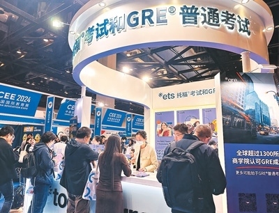 托福和GRE考試展臺前咨詢情況。