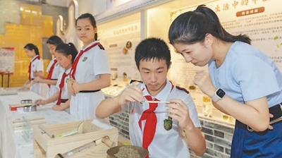 走進廣東省廣州市越秀區(qū)朝天小學的校園,耳邊傳來清脆的童聲,不時聞到中藥材的絲絲清香?!袄蠋焸儊砗纫槐├姘俸巷嫲桑玫氖仟毤遗浞?,甜甜的,好好飲?!睅酌麑W生迎面走來,熱情地分享中醫(yī)藥課程的實踐成果。