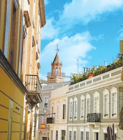 市中心的老城區(qū)商業(yè)街,現代與歷史交融得相得益彰——在這里,可以買到塞維利亞傳統(tǒng)民族舞蹈弗拉門戈的經典裝扮,也找得到當代潮流設計師的前衛(wèi)設計;可以步入有百年歷史的手工藝品老店,也可以打卡開業(yè)不久透著青春潮流氣息的文創(chuàng)快閃店。我從路邊買一支巧克力橙皮口味的冰激凌,邊吃邊逛,覽不盡有趣街景。