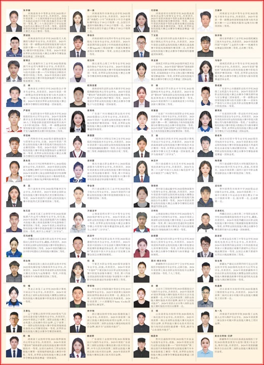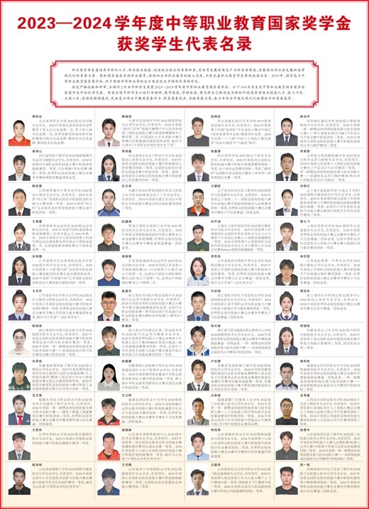 經(jīng)過嚴格選拔和評審,全國約2萬名中職學(xué)生榮獲2023—2024學(xué)年度中等職業(yè)教育國家獎學(xué)金。以下100名學(xué)生是中等職業(yè)教育國家獎學(xué)金獲獎學(xué)生中的優(yōu)秀代表。希望全國中職學(xué)生以他們?yōu)榘駱?,愿學(xué)技能、學(xué)好技能,努力將自己鍛造成為新時代的高素質(zhì)技術(shù)技能人才、能工巧匠、大國工匠,在推進強國建設(shè)、民族復(fù)興偉業(yè)中展現(xiàn)青春作為、彰顯青春風(fēng)采、貢獻青春力量,奮力書寫為中國式現(xiàn)代化挺膺擔當?shù)那啻浩隆?/p>