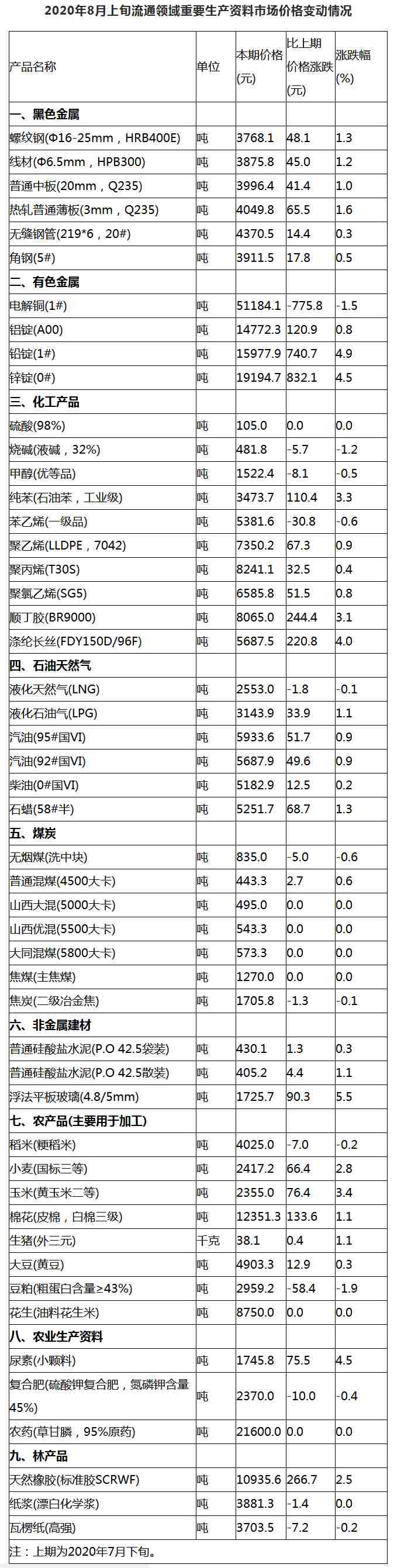 據(jù)國(guó)家統(tǒng)計(jì)局網(wǎng)站消息,據(jù)對(duì)全國(guó)流通領(lǐng)域9大類50種重要生產(chǎn)資料市場(chǎng)價(jià)格的監(jiān)測(cè)顯示,2020年8月上旬與7月下旬相比,31種產(chǎn)品價(jià)格上漲,11種下降,8種持平。其中,生豬(外三元)38.1元/千克,與7月下旬相比上漲0.4元,漲幅1.1%。