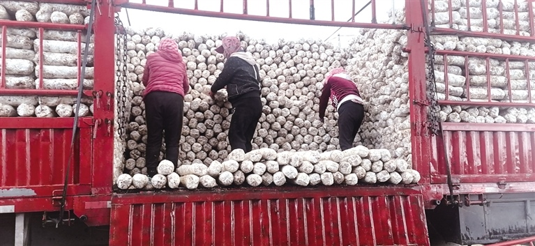 花菇菌棒進(jìn)棚上架