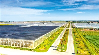 臨河核心區(qū)高標準設(shè)施農(nóng)業(yè)智能溫室大棚。