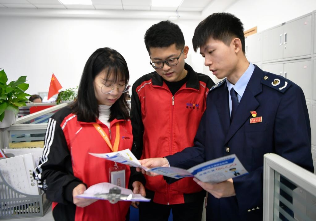 稅務(wù)工作人員向企業(yè)財(cái)務(wù)人員開(kāi)展稅收政策輔導(dǎo)宣傳(新華社 發(fā))
