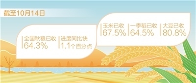 全國秋糧已收六成多(秋收進行時) 制圖:張丹峰本報北京10月15日電(記者常欽)據(jù)農(nóng)業(yè)農(nóng)......