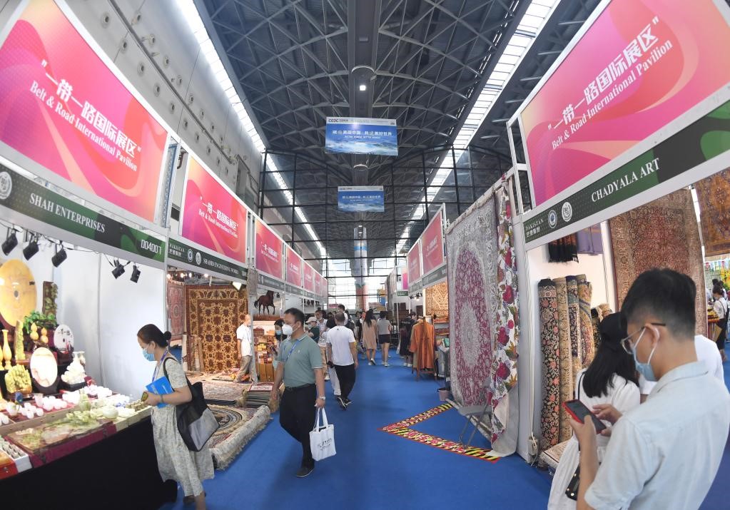 9月17日,參觀者在東博會“一帶一路”國際展區(qū)參觀。(新華社記者 周華 攝)