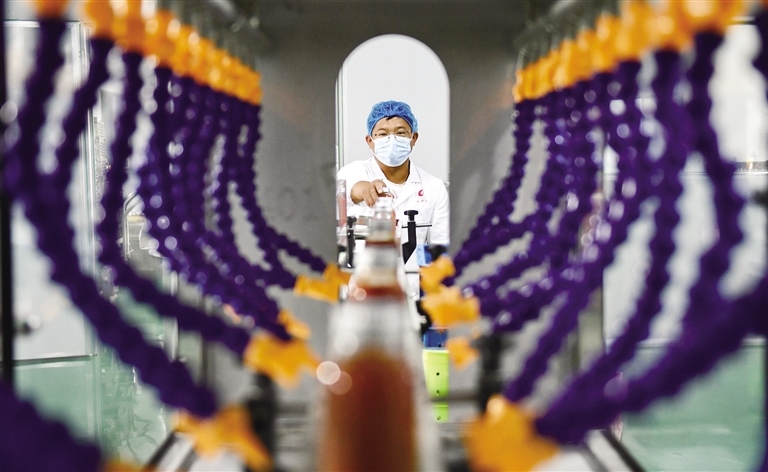 7月6日,內(nèi)蒙古昌興達實業(yè)有限責(zé)任公司的工人正在生產(chǎn)線上作業(yè)。該公司采取“公司+基地+農(nóng)戶”的標(biāo)準(zhǔn)化管理模式,與260多戶農(nóng)戶簽訂了有機枸杞種植協(xié)議,由公司免費為農(nóng)戶提供生物農(nóng)藥、管理技術(shù),并高于市場價回收,既保障了枸杞的品質(zhì),也促進了農(nóng)戶增收。廠區(qū)擁有枸杞干果、有機枸杞原漿、西紅柿原漿等多條生產(chǎn)線,產(chǎn)品出口歐美等26個國家和地區(qū)。(本報記者 孟和朝魯 攝)
