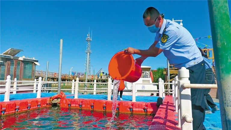 額濟納旗2022年居延海漁業(yè)資源增殖放流活動在風光秀麗、生態(tài)優(yōu)美的居延海畔東歸碼頭啟動,經公證機關公證,同意現(xiàn)場向居延海放流草魚魚苗100萬尾,花白鰱89萬尾?;顒蝇F(xiàn)場,前來參與活動的居民拿著水桶,把一條條活蹦亂跳的魚苗放生到居延海中。據了解,該旗從2008年以來累計放流的魚苗數量達到了900余萬尾。