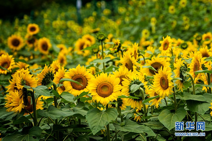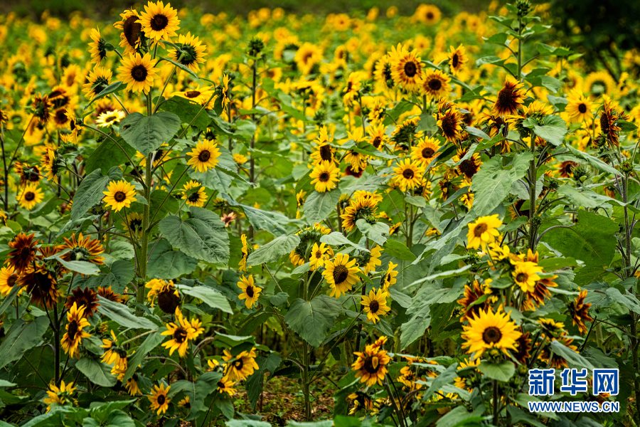 溫泉街道彩色向日葵(7月29日攝)。新華網發(fā)(安寧市溫泉街道供圖)