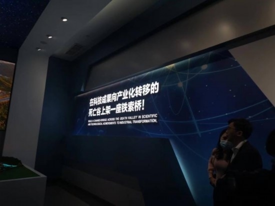 位于科學城的松山湖材料實驗室,是廣東省第一批省實驗室之一?!霸诳萍汲晒虍a(chǎn)業(yè)化轉移的死亡谷上架一座鐵索橋!”這句話就“印”在松山湖材料實驗室的展廳內。
