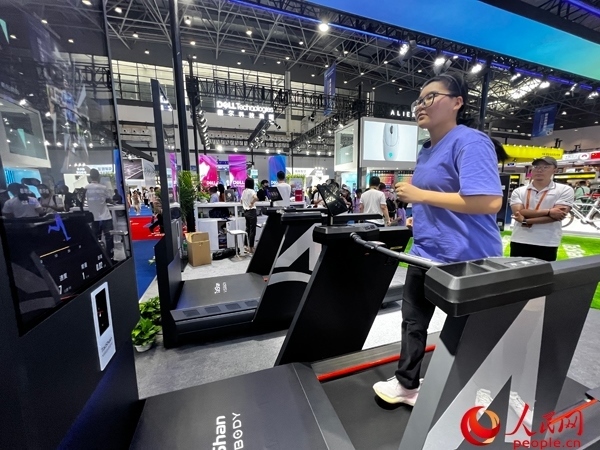 “我們這臺跑步機不僅能改變在跑步機上跑步的枯燥感,還能糾正身體的姿勢,改善跑步效果。”該展臺負(fù)責(zé)人表示,通過科技與運動的結(jié)合,能夠讓消費者更方便、更直觀地感受到科技魅力,樹立良好的運動習(xí)慣。