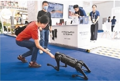 第三屆中國國際消費品博覽會科技感十足,參展的各家中國企業(yè)將“科技感”滿滿的產(chǎn)品展示出來,讓觀眾在消博會上與前沿的國產(chǎn)科技零距離接觸,體驗國產(chǎn)“黑科技”。圖為4月13日,觀眾跟科大訊飛展出的機器狗互動。新華社記者 楊冠宇攝