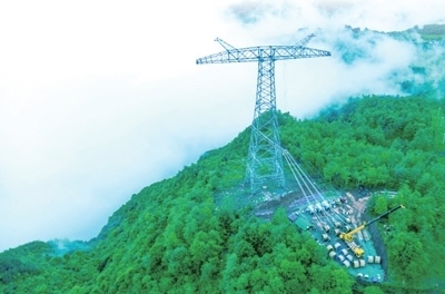 國家電網白鶴灘至浙江±800千伏特高壓輸電工程四川段放線現(xiàn)場。 盧忠東攝