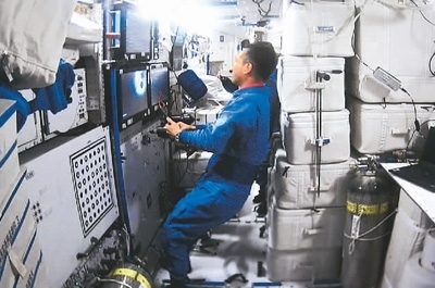 5月11日,天舟六號貨運飛船與空間站組合體完成交會對接后,天和核心艙內(nèi)的畫面。 新華社記者 郭中正攝