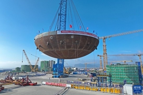 5月29日,在浙江省臺(tái)州市三門縣,三門核電二期工程4號(hào)機(jī)組核島鋼制安全殼底封頭順利吊裝就位。這是4號(hào)機(jī)組核島反應(yīng)堆廠房吊裝的首個(gè)大型模塊,標(biāo)志著該廠房主體結(jié)構(gòu)施工開始。三門核電二期工程4號(hào)機(jī)組于3月22日開工,整個(gè)二期工程建成投產(chǎn)后,一、二期裝機(jī)總?cè)萘繉⑦_(dá)到500萬(wàn)千瓦,年發(fā)電量預(yù)計(jì)可達(dá)到400億千瓦時(shí)。