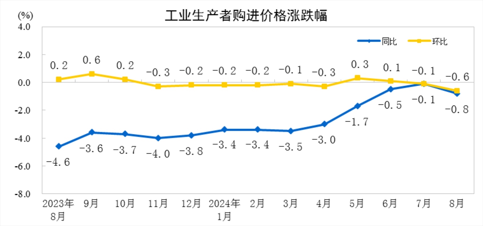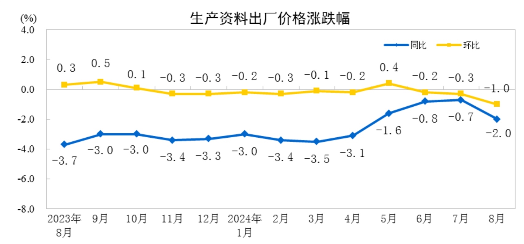 20248月工業(yè)生產(chǎn)者價格主要數(shù)據(jù)