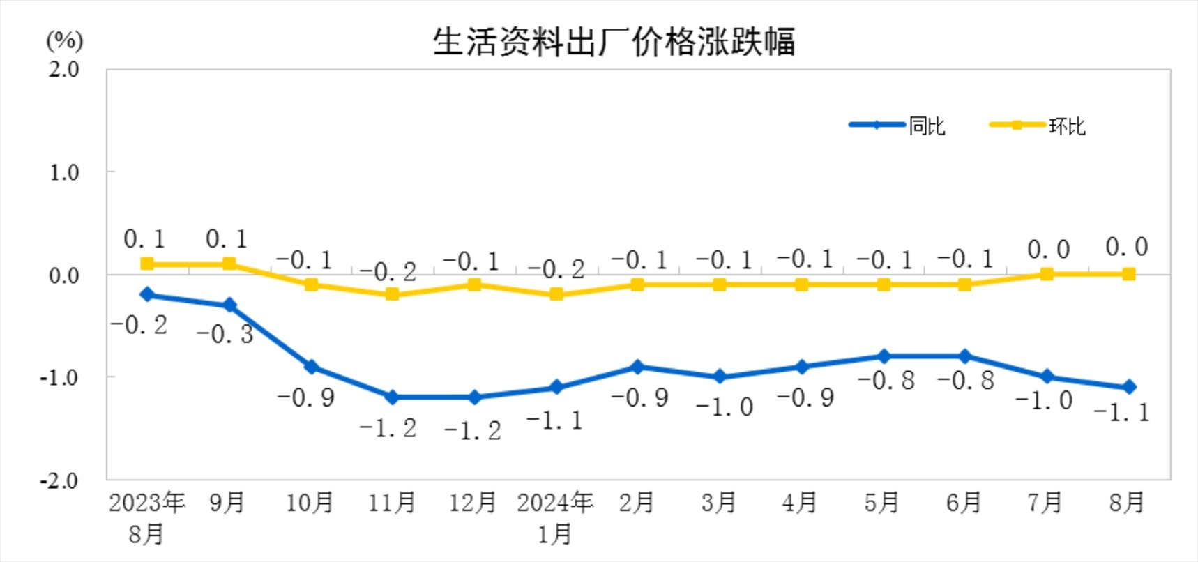 2024年8月份工業(yè)生產(chǎn)者出廠價格同比下降1.8%