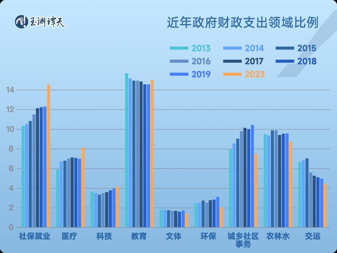 統(tǒng)計(jì)數(shù)據(jù)顯示,近年來,我們的財(cái)政支出結(jié)構(gòu)已經(jīng)變得更加有針對(duì)性,定向投資綠色經(jīng)濟(jì)、民生領(lǐng)域、高技術(shù)等有利于民的行業(yè)。在去年的財(cái)政支出結(jié)構(gòu)中,社保就業(yè)、教育這類民生領(lǐng)域一直占據(jù)大頭。其中,社保就業(yè)、醫(yī)療的財(cái)政投入漲幅遠(yuǎn)超其他類目。