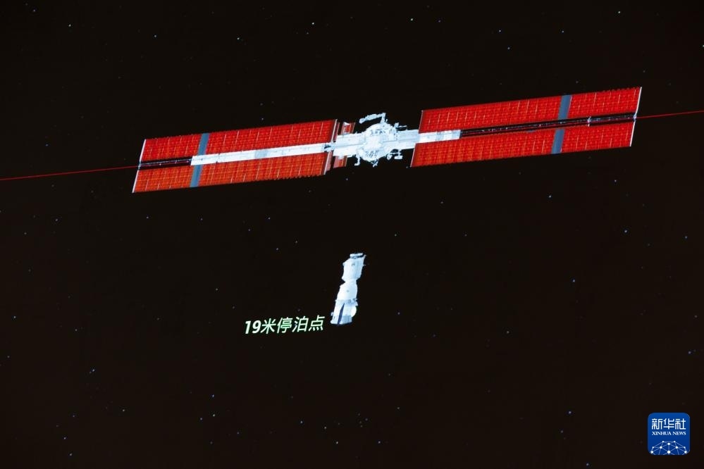 4月24日在北京航天飛行控制中心拍攝的神舟二十號載人飛船成功對接空間站天和核心艙畫面。新華社記者 金立旺 攝