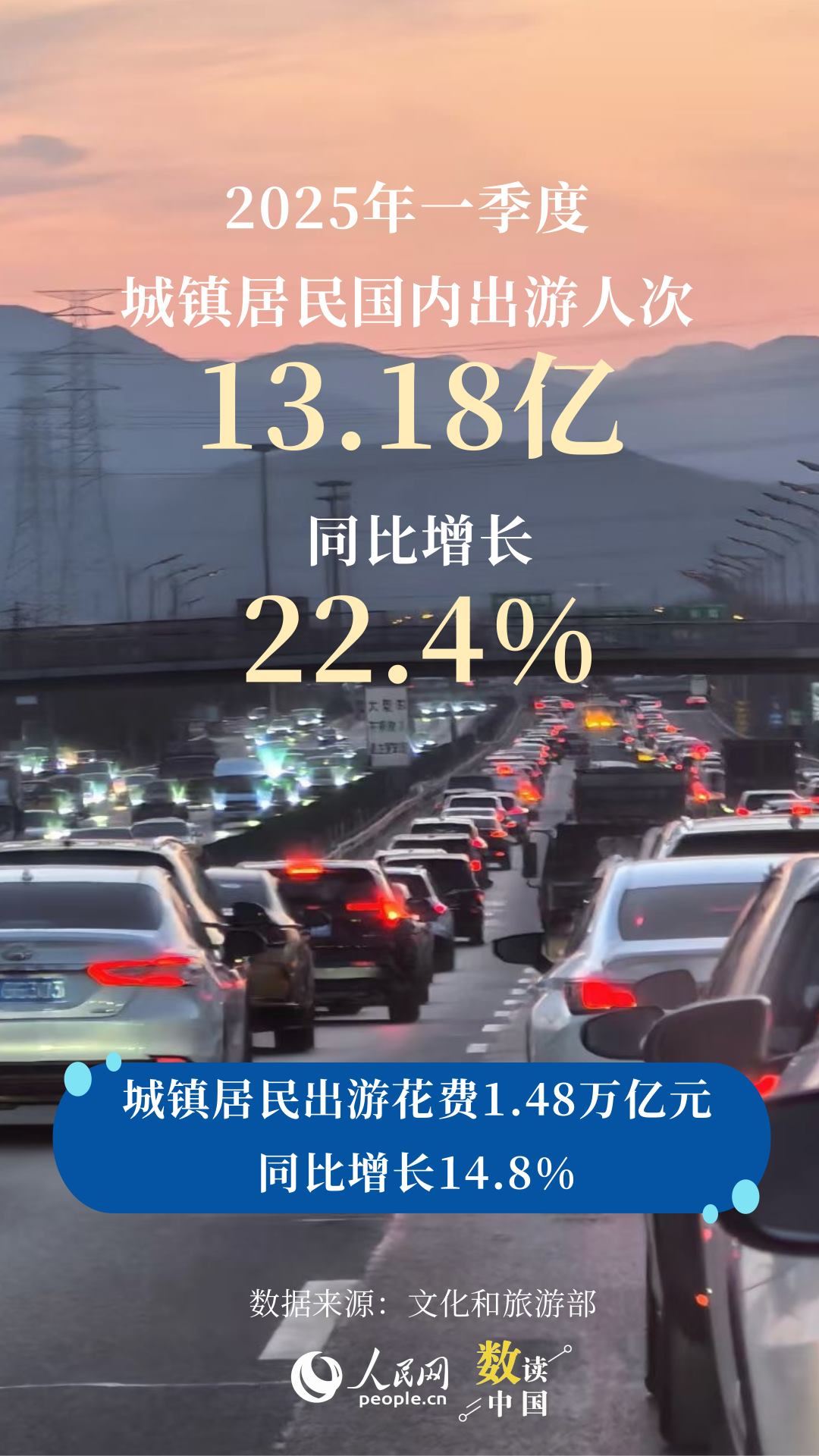 數據顯示,一季度,全社會跨區(qū)域人員流動量為173.9億人次,同比增長4.0%;一季度,國內出游人次17.94億,比上年同期增加3.75億,同比增長26.4%。