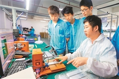 江西省吉安市峽江縣采取“校企合作”等方式發(fā)展職業(yè)教育,有針對性地培養(yǎng)企業(yè)需要的專業(yè)技術人才,拓寬學生就業(yè)渠道。圖為近日,峽江縣職業(yè)中專的學生在學習鋰電池檢測技術。