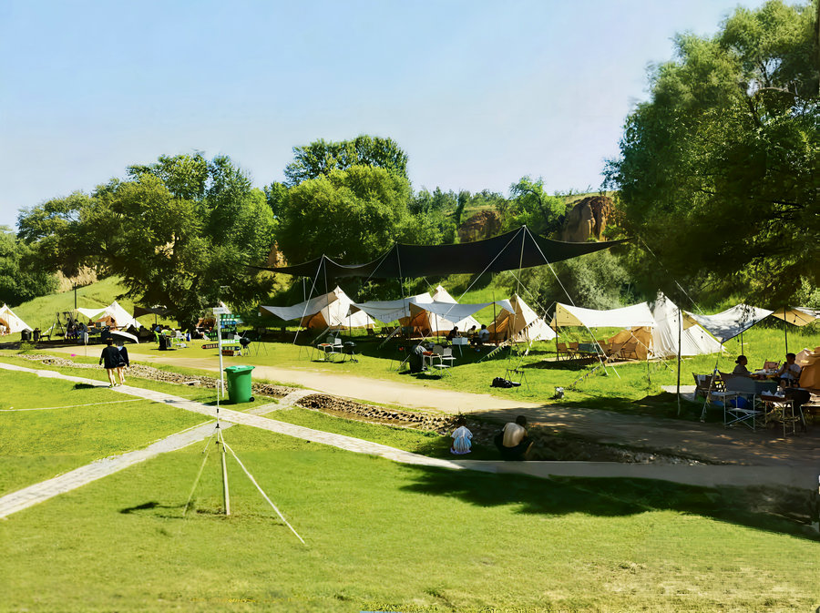 2022年,柳條溝村人裴示雨帶著資金與想法回到家鄉(xiāng),將目光投向了村里那條荒廢多年的山溝。他先付30萬(wàn)元承包費(fèi),再砸下180萬(wàn)元改造,300畝荒坡上崛起了自由野輕奢露營(yíng)基地。如今,這里集露營(yíng)、燒烤、氧吧體驗(yàn)于一體,成了城里人周末“躲清閑”的首選地。