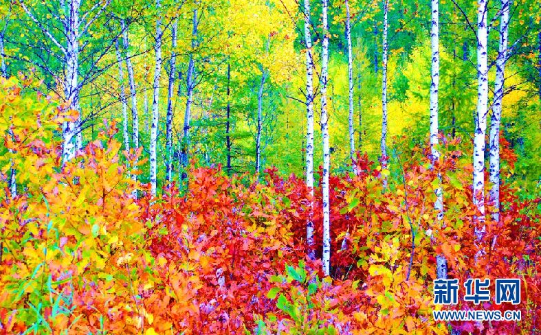 內(nèi)蒙古大興安嶺阿里河國(guó)家森林公園內(nèi)的樺林紅葉。(9月28日攝)新華網(wǎng)發(fā)(欒維敬 攝)