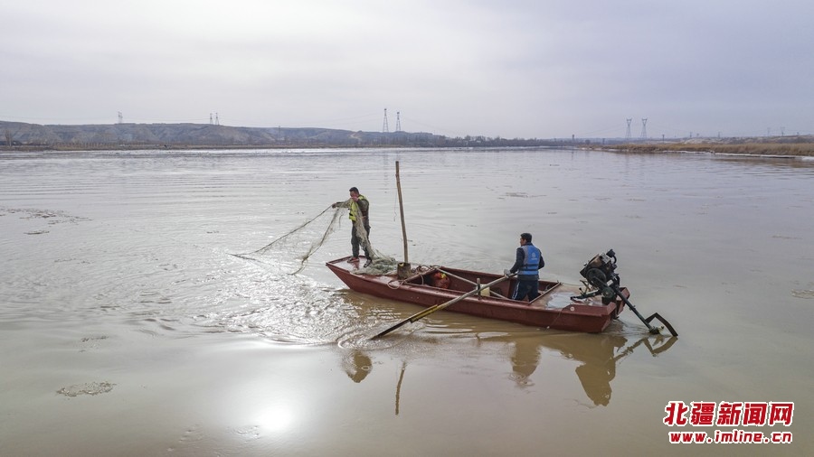 3月11日,黃河呼和浩特托克托縣段,漁民捕撈開河魚。近日,隨著北方氣溫逐漸回升,黃河托克托縣段冰河加速開河。 樂炎攝影報道