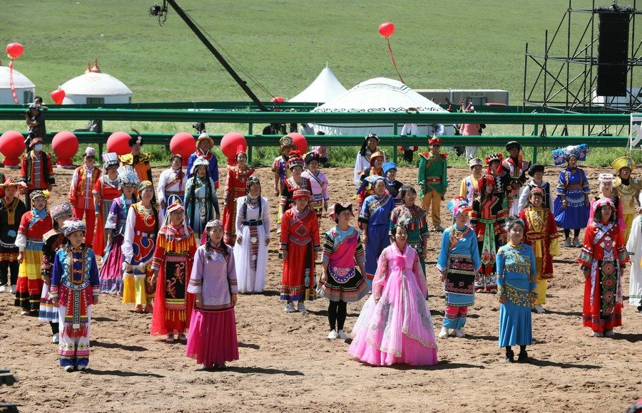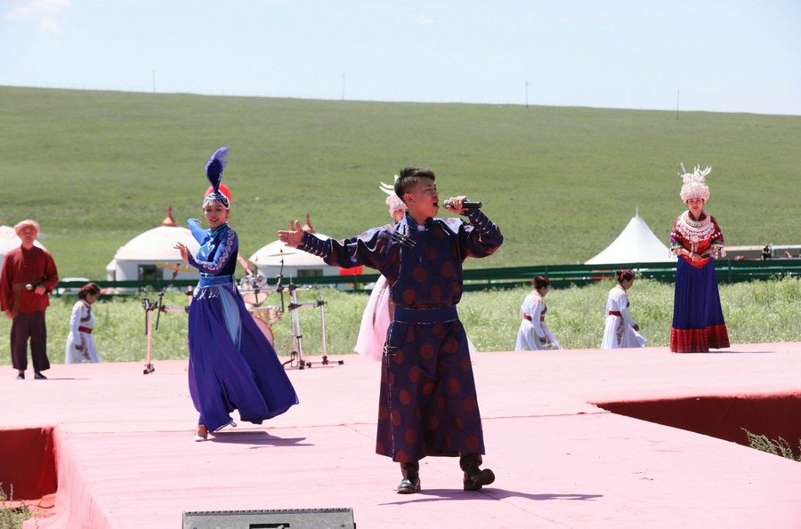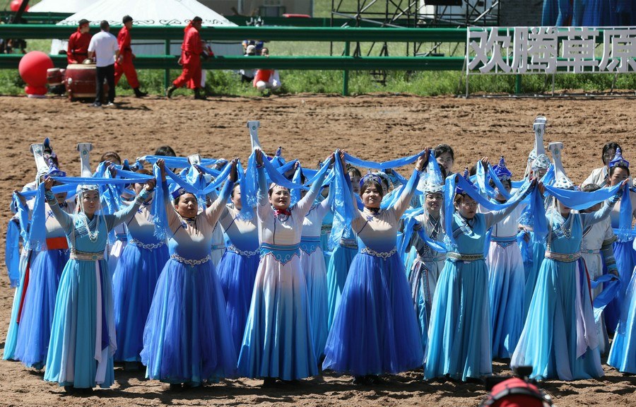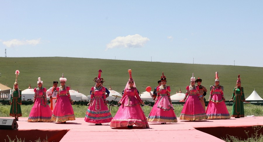 伴著悠揚(yáng)的歌聲,踏著激昂的步伐,在旗幟方隊(duì)的引領(lǐng)下,哈達(dá)方隊(duì)、民族方隊(duì)、烏蘭牧騎方隊(duì)、牧馬人方隊(duì)、裁判員及運(yùn)動員方隊(duì)依次走進(jìn)會場。隨著彩煙燃放,氣球升空,那達(dá)慕在梅林組合的歌曲《歡騰那達(dá)慕》中拉開帷幕。隨后,歌伴舞《石榴花開》等節(jié)目輪番登場,現(xiàn)場觀眾掌聲雷動,讓來自全國各地的游客在紅石崖高山牧場領(lǐng)略了草原的柔情。