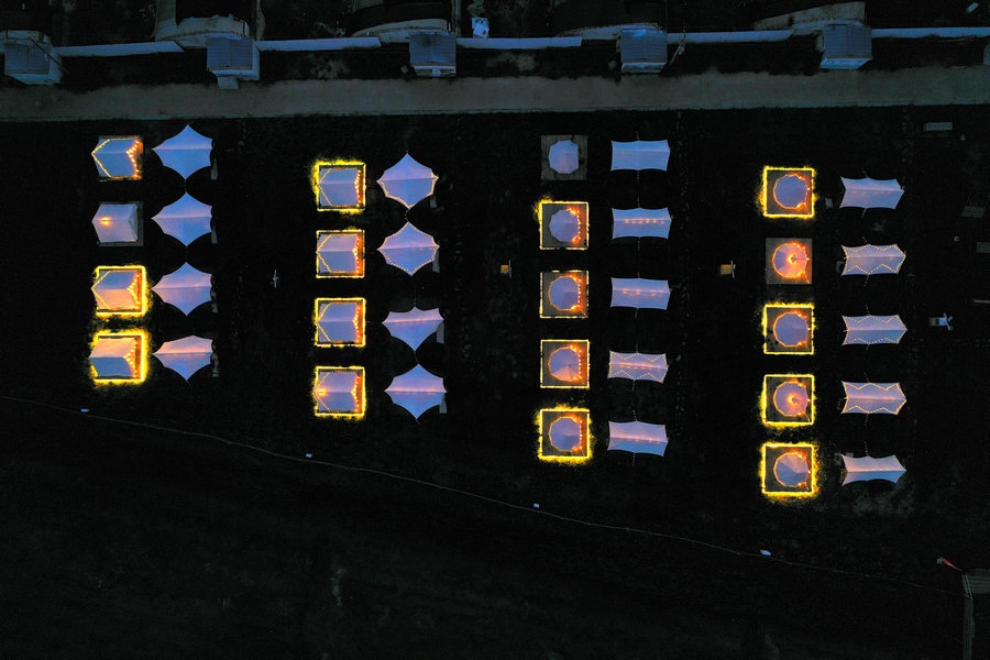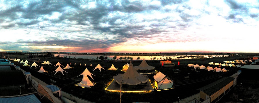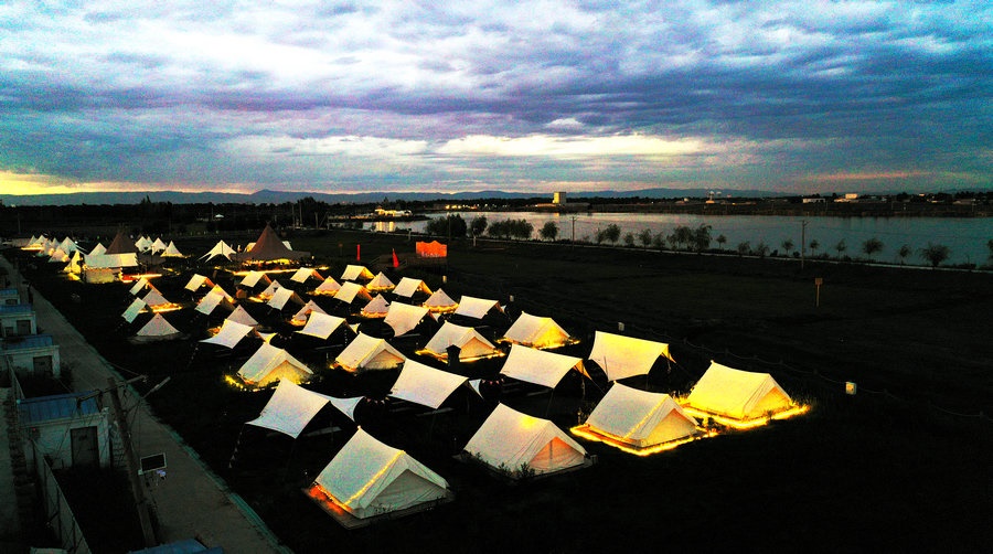 夜幕下的湖邊帳篷區(qū)  記者 張楊攝影
