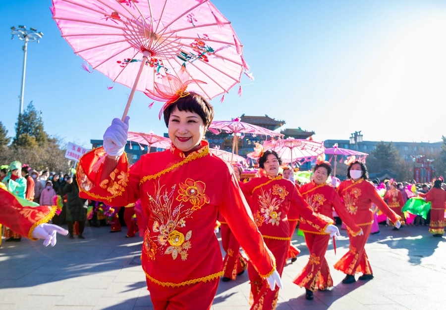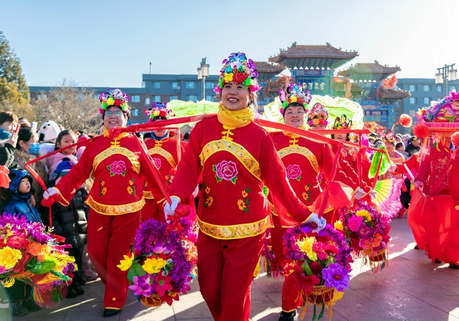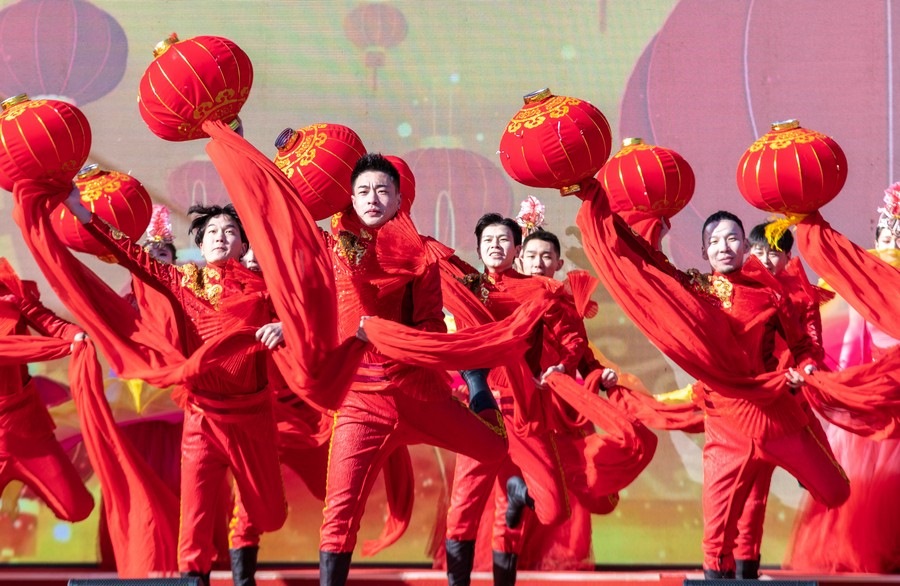 2024年2月15日,演員在呼和浩特新春文化廟會開幕式上表演。丁根厚 攝