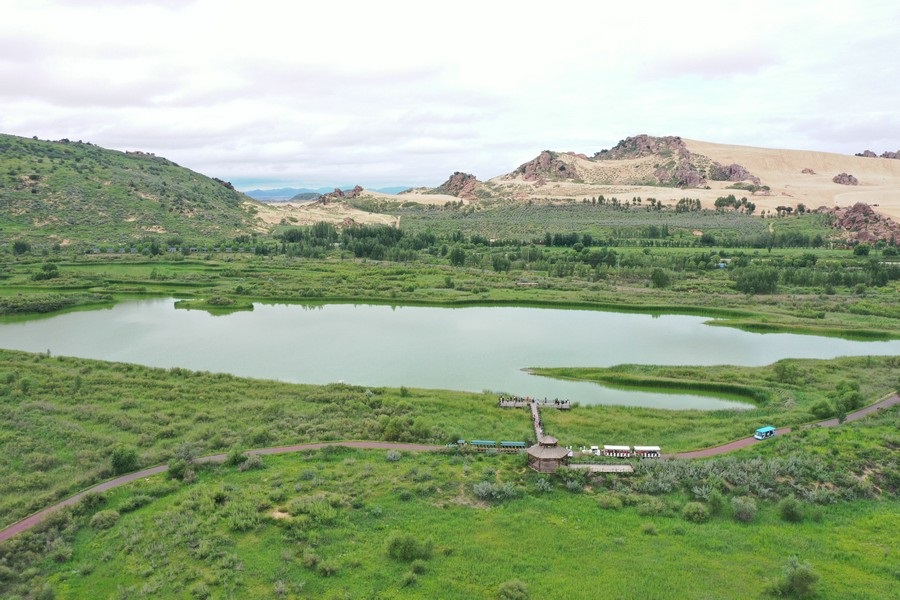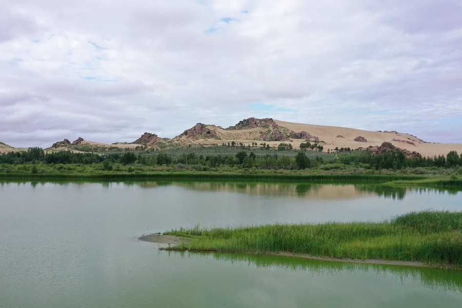 玉龍沙湖位于內(nèi)蒙古赤峰市翁牛特旗,這里集沙漠、怪石、古樹、奇峰、草原、湖泊、濕地等于一身,5萬畝草原與茫茫的科爾沁沙地相連,綠洲掩映,湖光山色,形成沙海相連的奇特景觀。