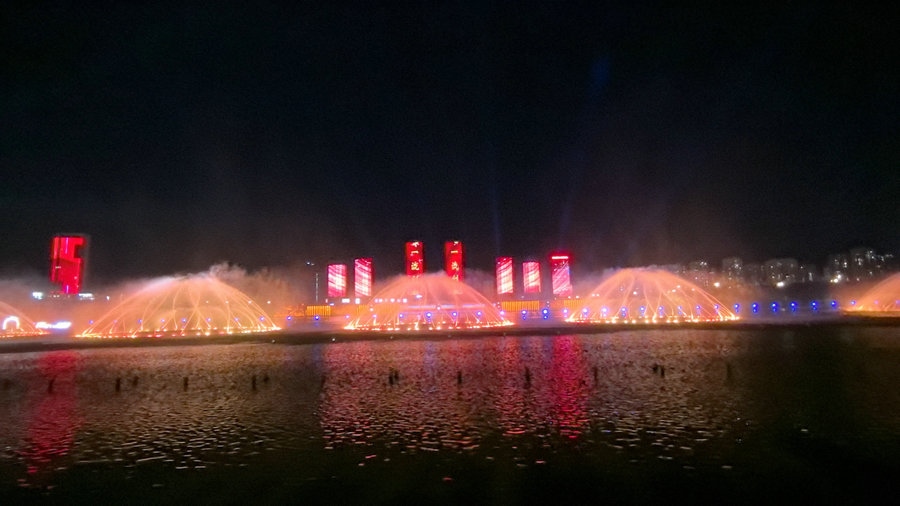 夏夜的烏蘭木倫湖音樂(lè)噴泉